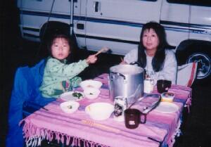 朝から徳永ファミリーが遊びにきて、タープの下でお絵かきしたり・・・