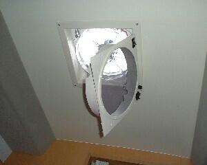 ファンモーターの取り付けねじ4本を外して少しずらし、ブラケットを取り付けます。
