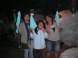 気を取り直して向かったのは、"オホーツク流氷館"。ここは2度目の訪問ですが、−18度のシバレ体験で、初めて濡れタオルの振り回しをやってみんな大喜び。美奈穂は、クリオネがお気に入りで、自分のデジカメで何度も撮影するがうまくとれなかったみたい。