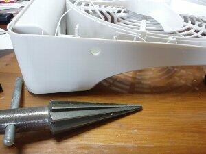 ハンドドリルで小さな穴をあけて、リーマーで大きくします。
